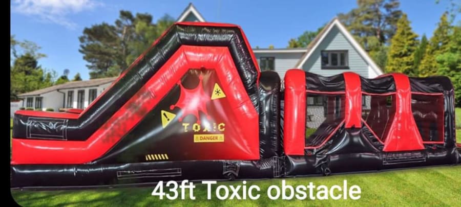 Get ready to elevate your party to a whole new level with our Toxic Obstacle Course! Perfectly designed for kids of all ages, this 43-foot long adventure features an exciting 8-foot slide and a protective roof to ensure fun regardless of the weather. Whether you're planning a birthday bash, a community event, or a family gathering, this obstacle course promises hours of endless fun and entertainment.